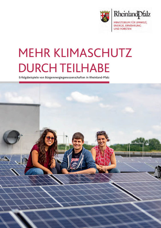 Erfahren Sie mehr über erfolgreiche Energiegenossenschaften aus Rheinland-Pfalz und ihre Projekte in der Broschüre Mehr Klimaschutz durch Teilhabe: Erfolgsbeispiele von Bürgerenergiegenossenschaften in Rheinland-Pfalz (2020).