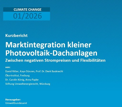Die zweite Untersuchung vom Öko-Institut und der Stiftung Umweltenergierecht im Auftrag des Bundesumweltamtes trägt den Titel: „Kurzbericht - Marktintegration kleiner Photovoltaik-Dachanlagen: zwischen negativen Strompreisen und Flexibilitäten“. Diese Studie können Sie hier einsehen.